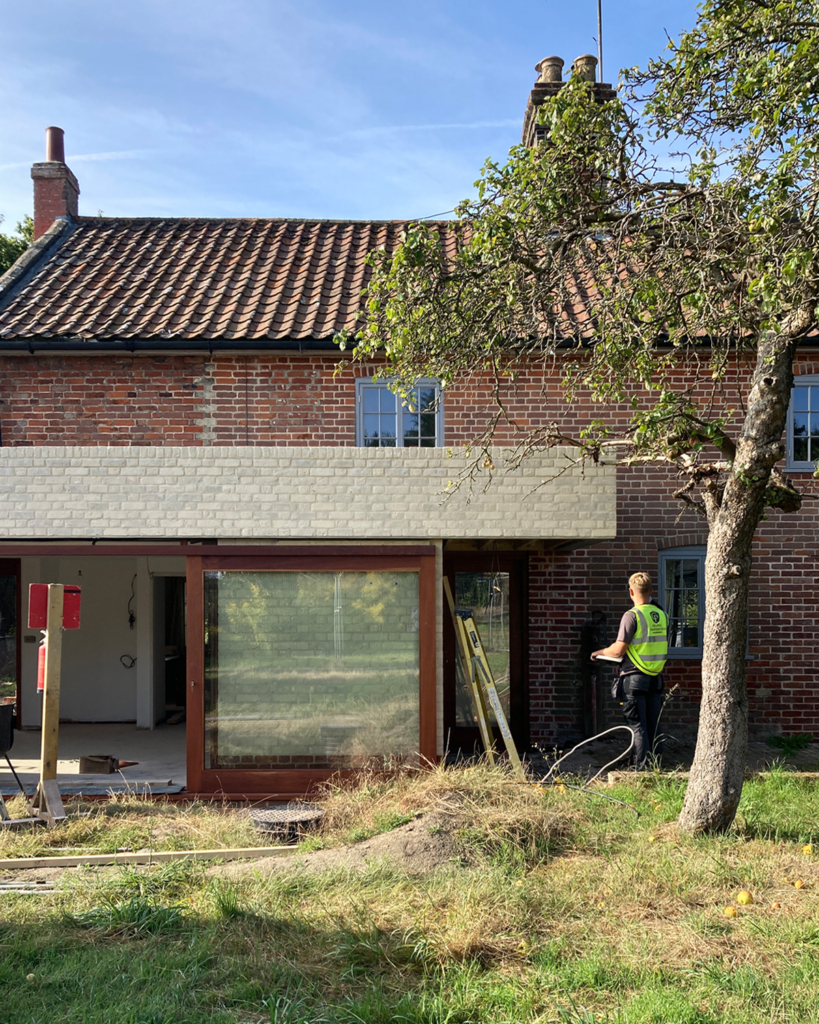 A photograph from our recently completed Hall Cottage project. This radical reworking of a series of ad hoc 20th century extensions to a listed cottage retained much of the existing structure.