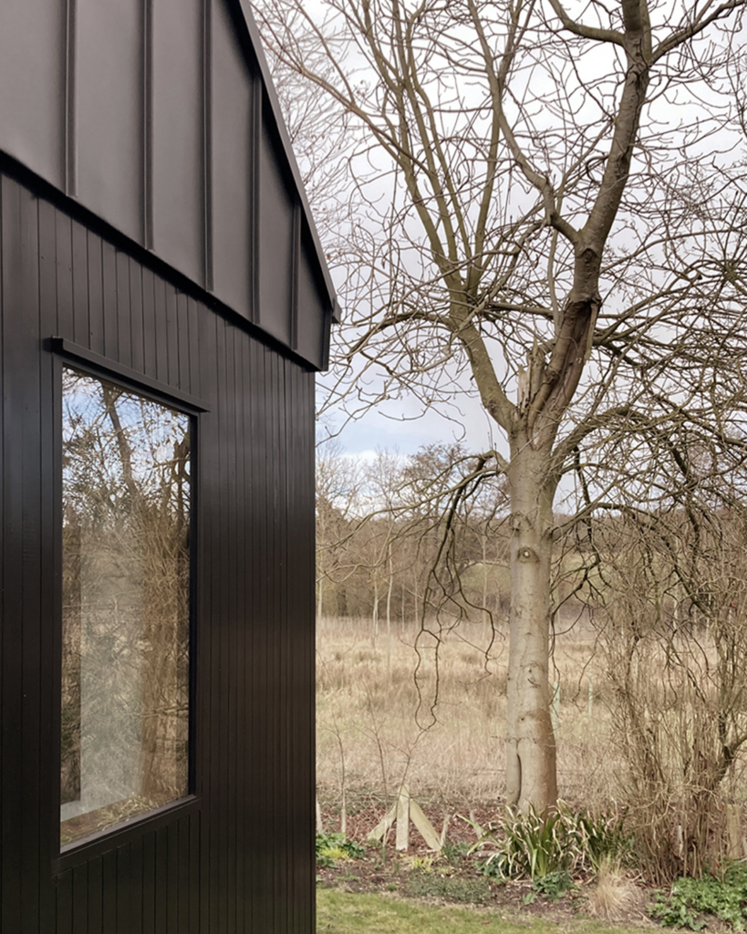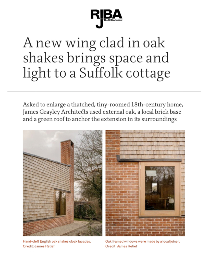 A new artists studio in the grounds of a listed farmers cottage clad in oak shakes, some of which will be split from a fallen tree on site.