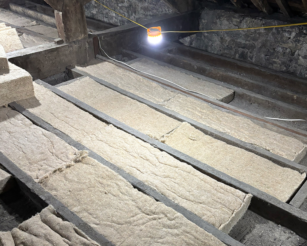 Progress on site at one of our historic retrofit projects. Many biobased materials on site with the first layer of lime plaster complete and the wood fibre insulation currently being installed.